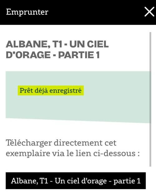 (choisissez un mot de passe simple, vous pourrez utiliser le même pour chaque livre si vous le souhaitez) - Votre prêt est enregistré, vous pouvez fermer cette fenêtre en cliquant sur la croix